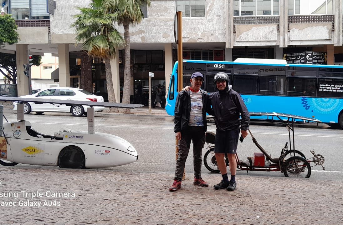 Concernant la course, les faits marquants de cette 9ème journée c’est d’abord le passage du Sun Trip au Maroc ! C’est une première, inaugurée par Jack et Jean-Marc, arrivés à Tanger avec un écart de 2 heures. Ils sont arrivés sous la pluie mais accueillis avec beaucoup de gentillesse par Youssef El Houass, suntripper 2018 et grand voyageur marocain. Quelle fierté. Les deux leaders ont ensuite roulés toutes la journée sans soleil, les batteries vides ou quasi vides. Un a moment on a pensé que Jean-Marc allait de revenir sur Jack, mais finalement l’écart c’est maintenu, et environ 60km séparaient le premier du deuxième. Le Checkpoint de Rabat sera franchit ce dimanche 21 avril !