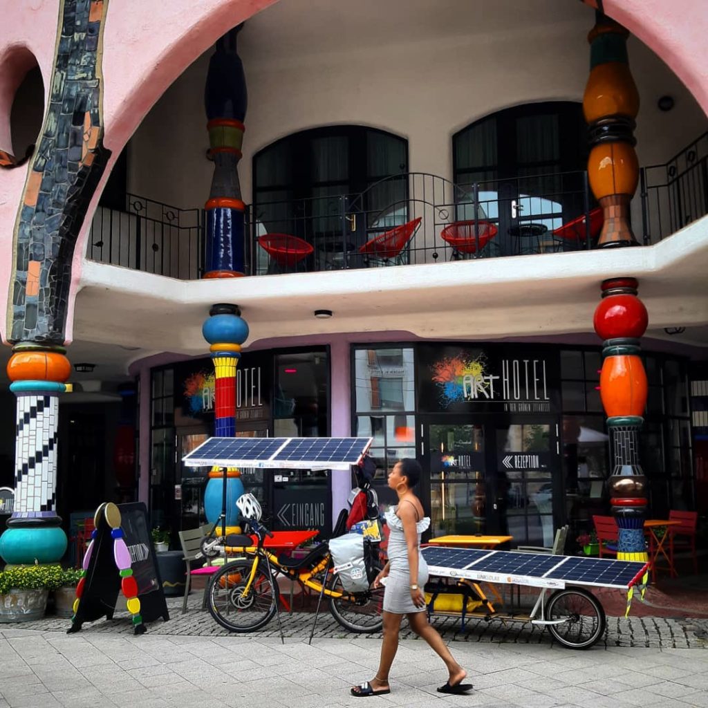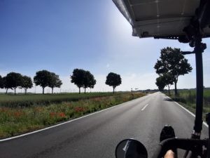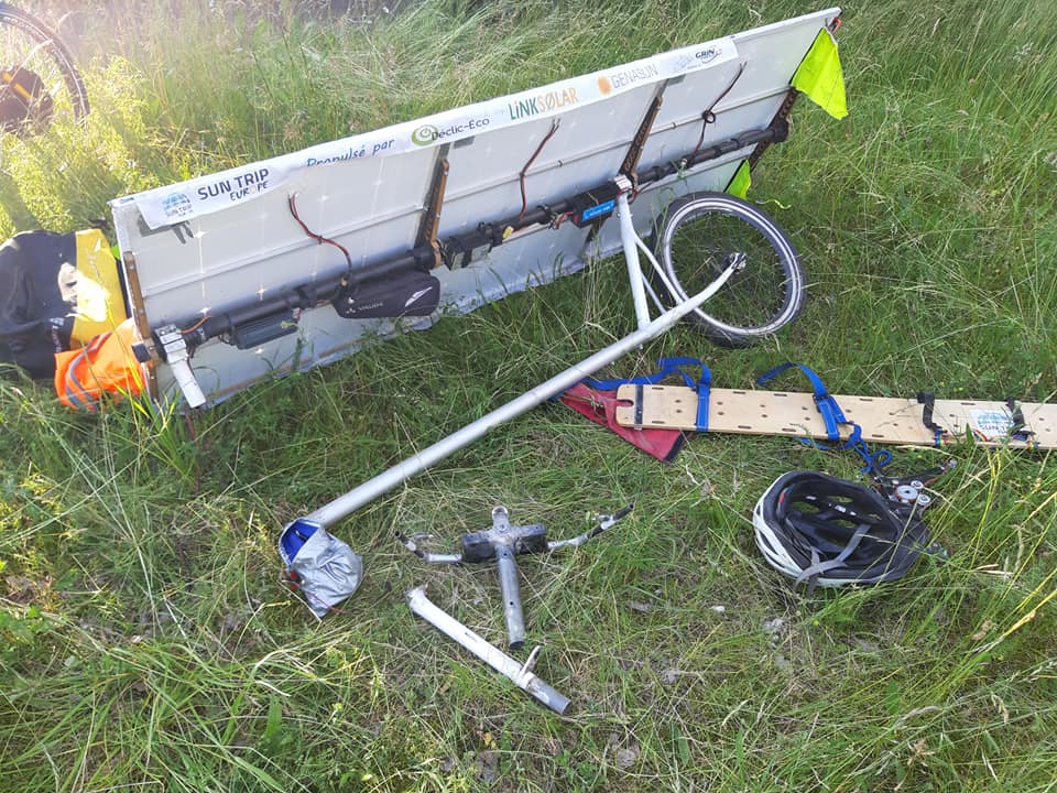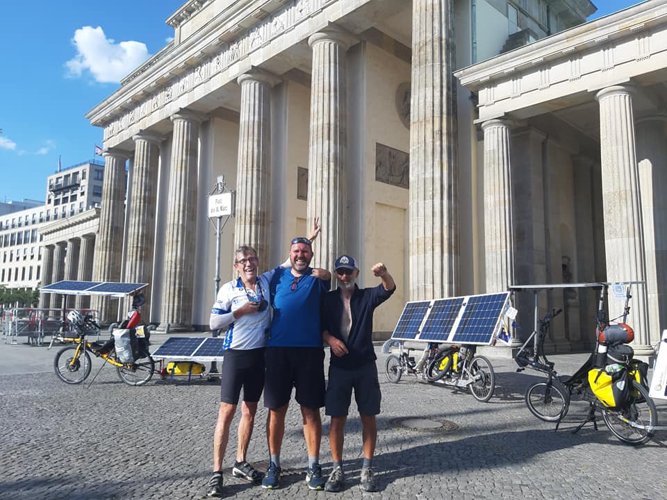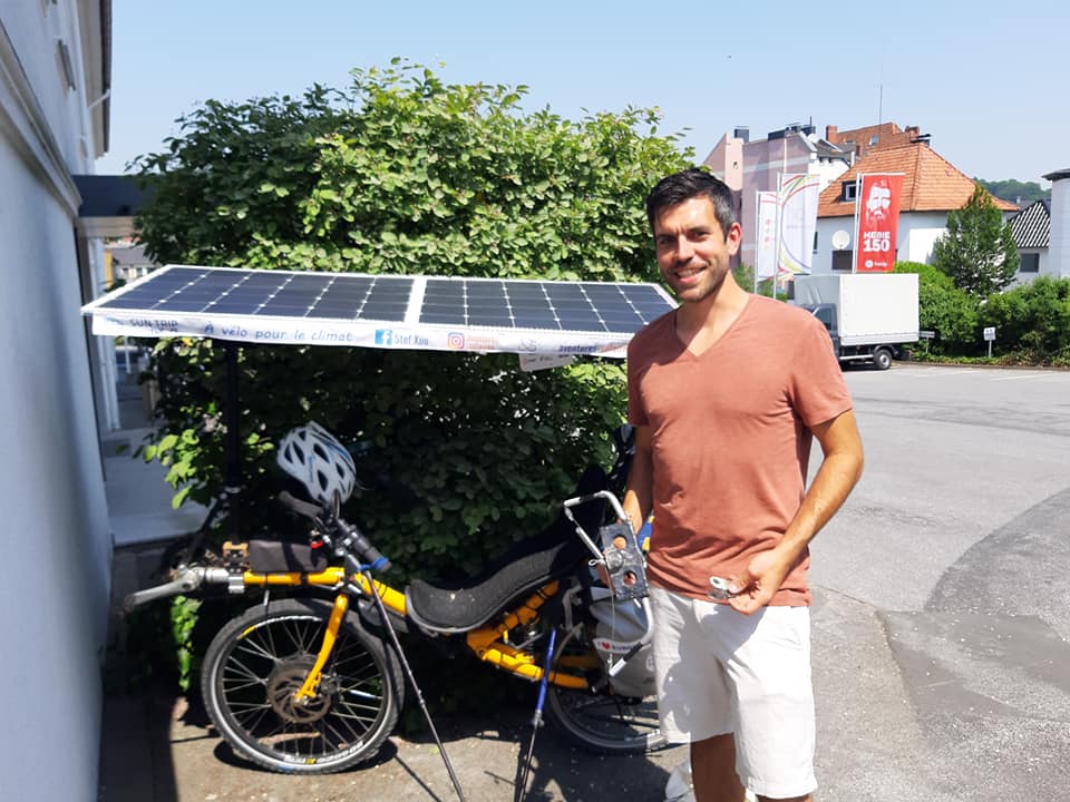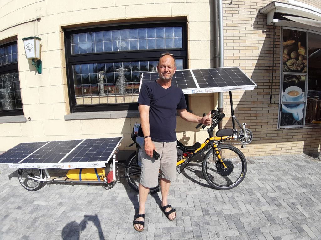 Stéphane Bujadoux compte indéniablement dans les participants les plus polyvalents, capable d’aller vite, en 100% solaire, mais aussi de prendre le temps de la rencontre et de la communication. Le premier jour il pointait en 3ème position, mais un problème de remorque l’a ramené sur l’arrière du groupe, où il est comme un poisson dans l’eau, en mode reporter du quotidien du Sun Trip ! Quelques questions au moment où il arrivait sur Berlin.
