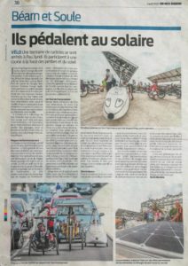 Ma voisine Odette avait conservé précieusement l’article sur le passage du Suntrip à Pau paru dans Sud Ouest Dimanche du 2 août.