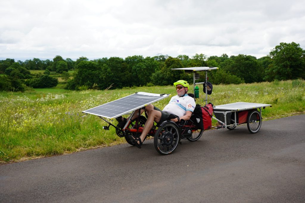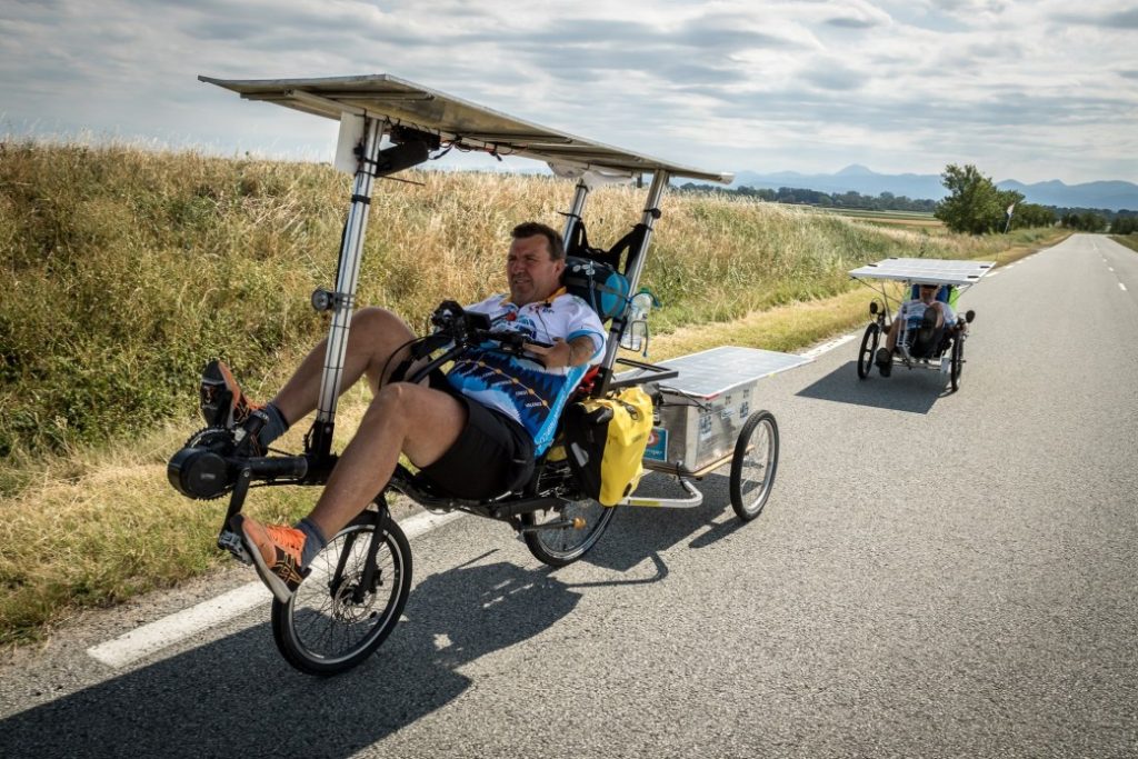 Le commentaire d’Alexandre Zavisic : « J’adore le SunTrip et surtout l’excellente ambiance entre les participant*es. Première étape étonnamment fatigante, je m’attendais pas a devoir pédaler aussi fort avec mon solar.cargobike pour devoir surmonter les nombreux mètres de dénivelés, mais c’est vraiment extra de penser qu’on roule a 100% au soleil et muscle ».