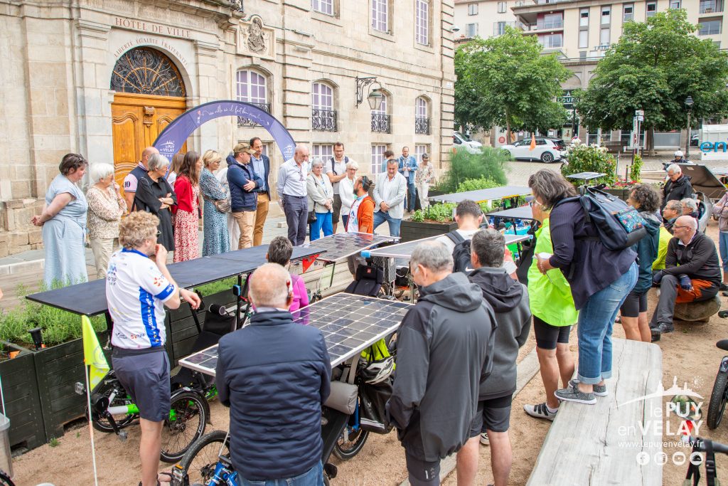 Lundi 16 juin 10h, les 17 participants de l’aventure Sun Trip Auvergne 2025 prenait le départ du Puy, en présence de l’équipe municipale. Un départ sous les nuages mais avec un sourire généralisé.