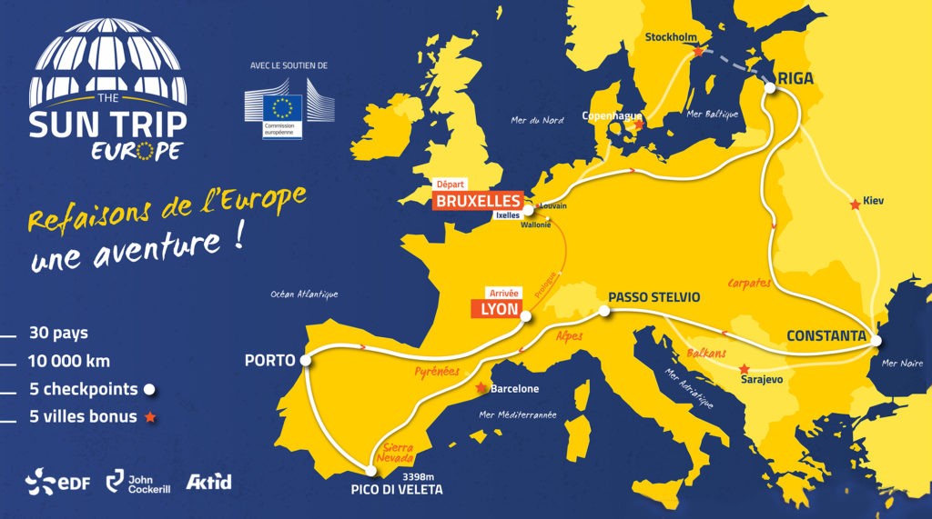 “Refaisons de l’Europe une aventure”, c’est le pari que nous vous proposons aux participants de cette 4ème édition de l’aventure The Sun Trip. Ce projet européen n’est pas un plan de secours, c’est tout simplement le projet qui fallait au Sun Trip pour se relancer sur une dimension internationale.